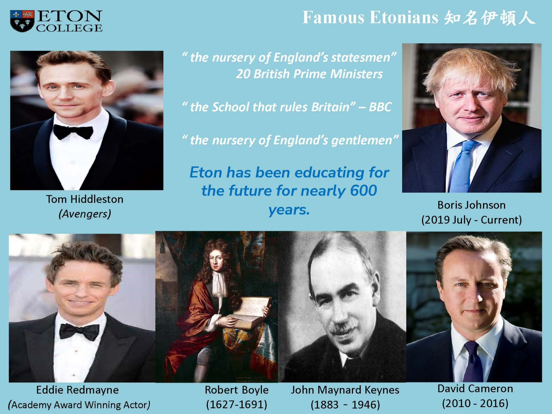 伊頓公學由亨利四世國王於1440年創立,是英國歷史最悠久,世界上最負盛名的寄宿學校之一,其著名校友包括英國王室成員,20位英國首相和20位諾貝爾獎獲得者。伊頓公學正在為學生提供一個新的國際未來領袖暑期學校,通過融合伊頓的教育理念,體驗伊頓在教學和領導力發展方面的卓越表現。我們的使命是教育和激勵今天的年輕人成為有愛心和紀律嚴明的領導者。